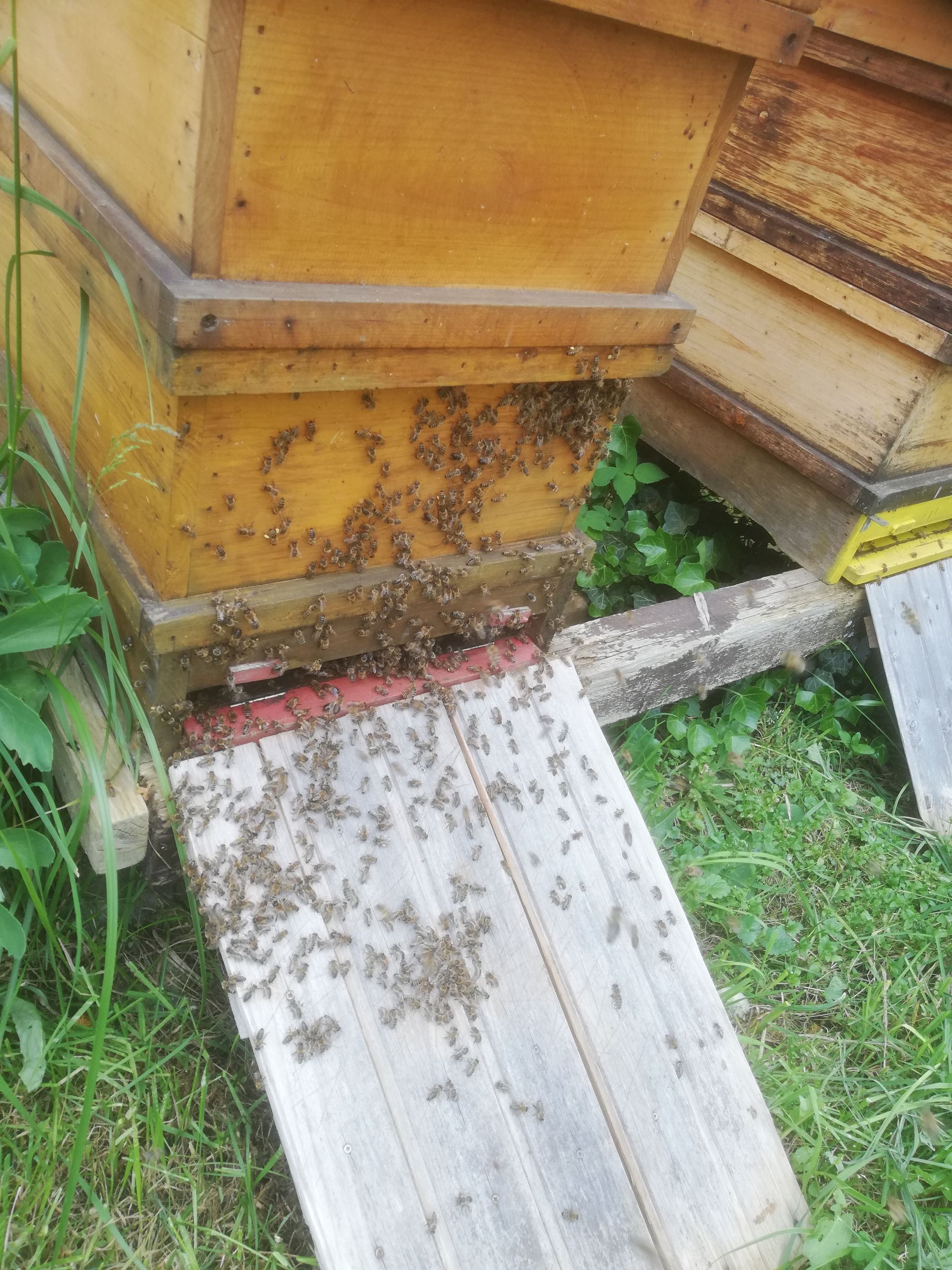 Jedes Bienenvolk bewohnt einen eigenen Bienenstock. Es besteht im Frühsommer aus einer Königin, 300 bis 1000 Drohnen (männliche Bienen) und 30.000 bis 40.000 Arbeiterinnen. Im Bienenvolk befindet sich permanent ein Honigvorrat von 10 bis 40 kg.